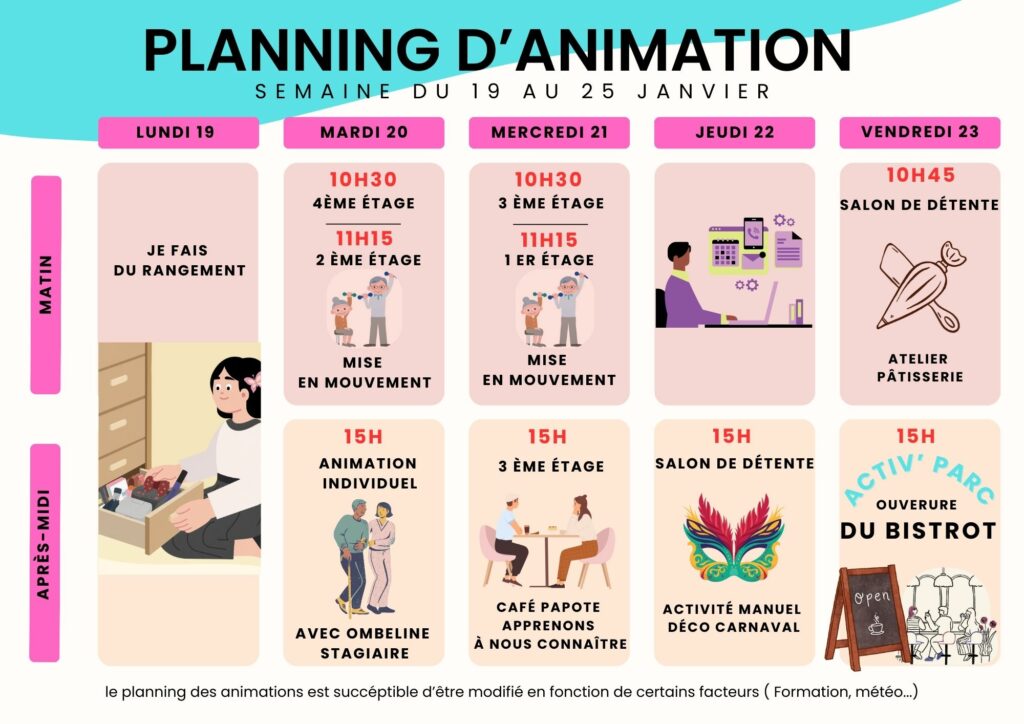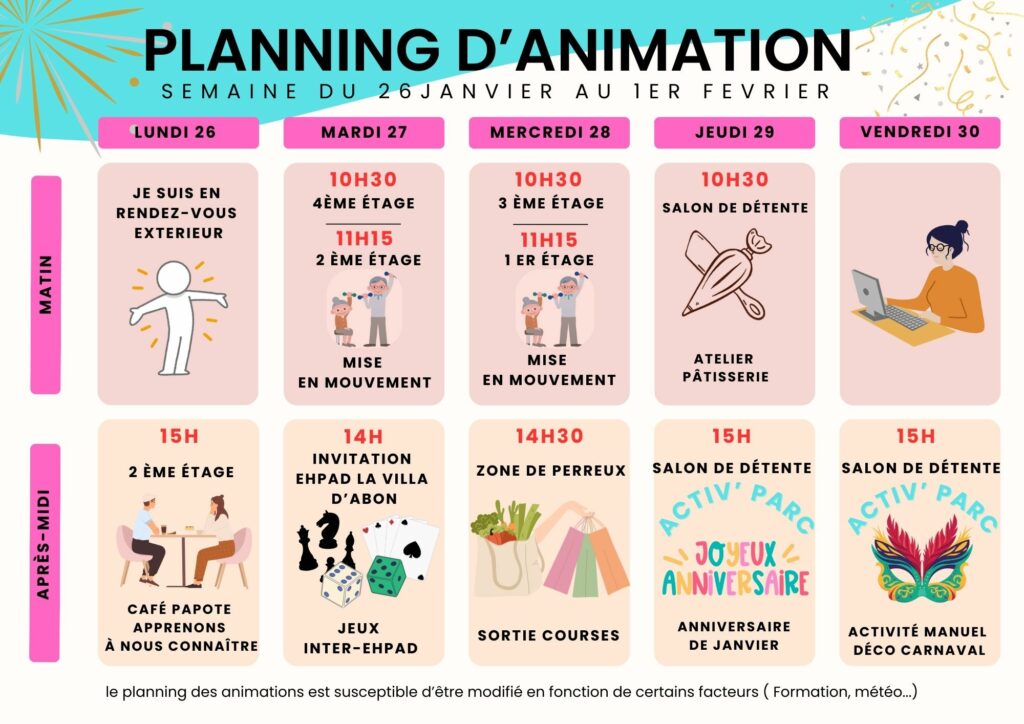 Planning d’animation du mois de Janvier 2026