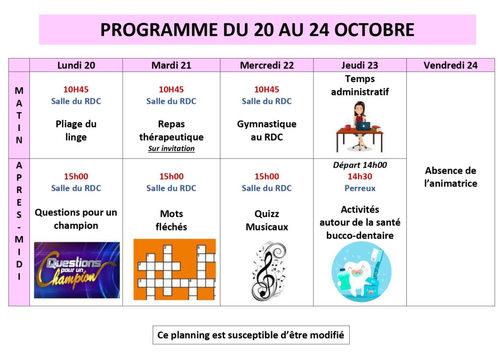 Le planning des animations est susceptible d’être modifié en fonction de certains facteurs (formations, météo … )